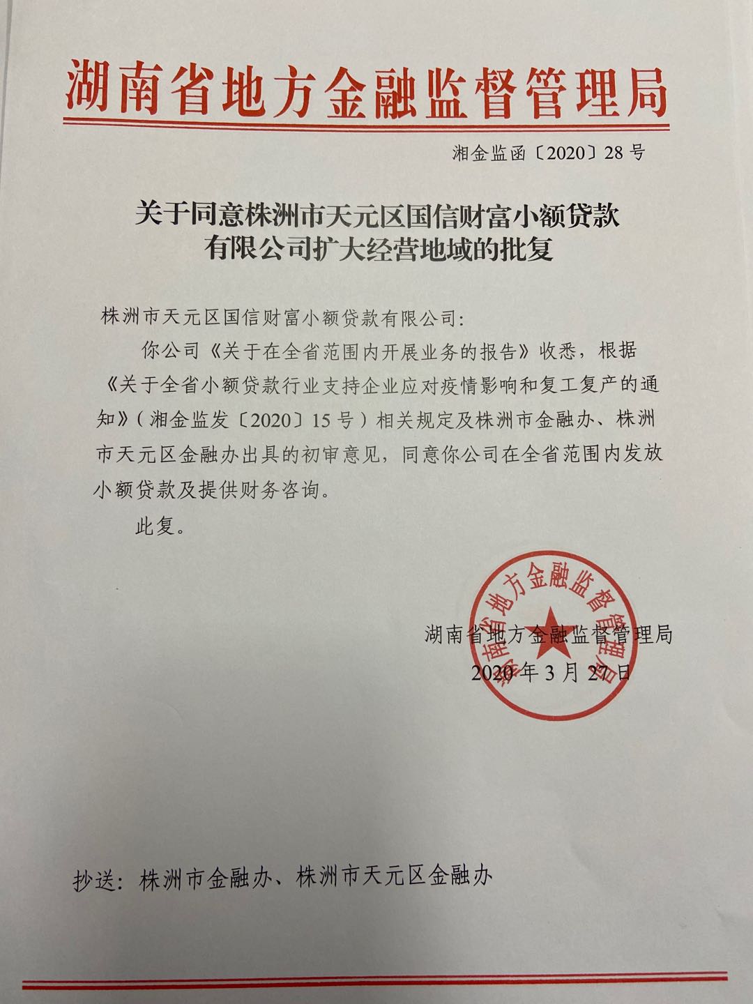 省内第一家!国信财富集团旗下小贷公司获得全省业务经营资格