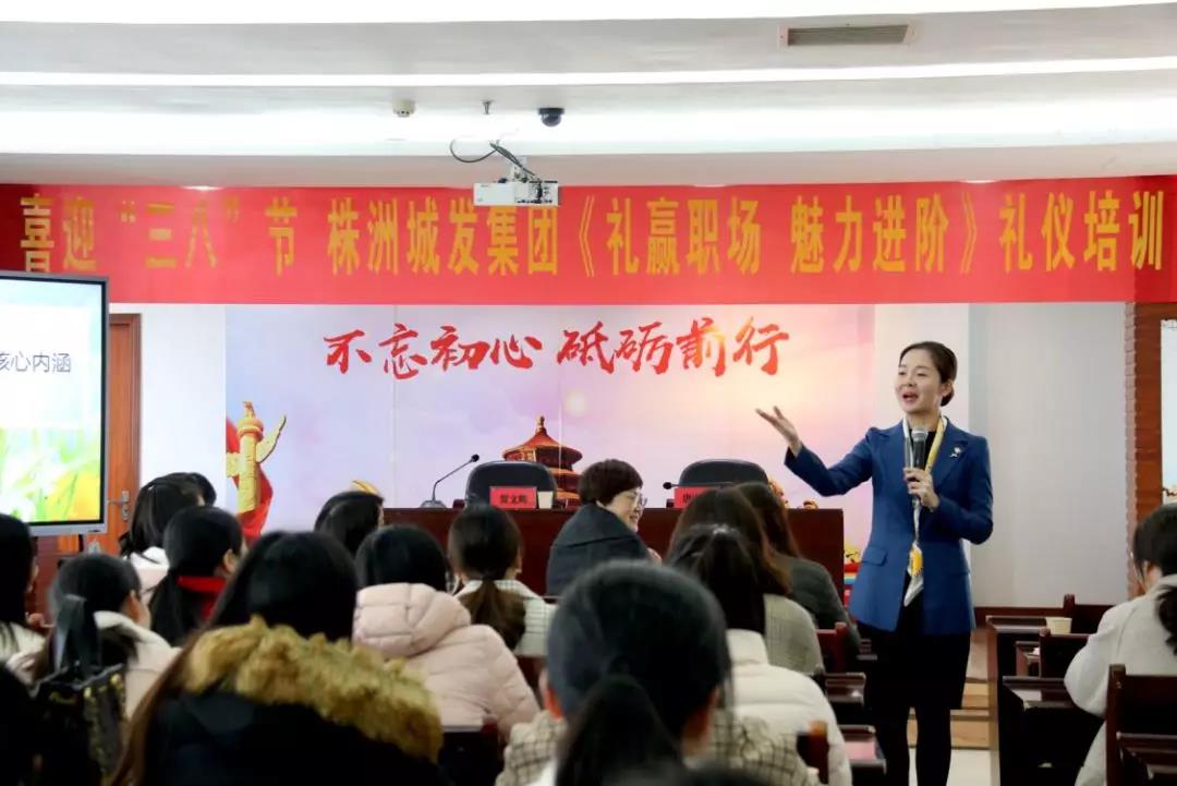 3月8日下午,集团公司特别邀请长沙道至简教育有限公司金牌讲师唐安娜老师,为集团本部全体女职工、子公司工会主席、子公司分管综合副总、综合管理部部长近70人开展庆祝“三八妇女节”新时代职场女性礼仪培训活动。