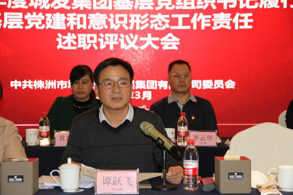 集团党委书记、董事长谭跃飞出席会议,对各基层党组织书记的述职报告进行点评并做讲话。集团党委副书记、工会主席贺文辉主持会议。