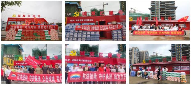 12日,株洲锦绣犀城公司召开紧急防汛抗洪救灾会议,制定紧急防汛抗洪救灾预案,成立防汛抗洪救灾小组,做到出现任何险情随时汇报;项目现场安排专人负责值班,并调动项目上的施工方、监理等所有人员,随时待命;并与高陇镇政府取得联系,镇企联动,随时服从安排,共同做好此次防汛抗洪救灾工作。会上强调,所有党员应发挥先锋模范作用,干部职工要发挥国企员工的奉献、担当、攻坚克难精神,齐心协力,保卫家园。随后,组织专人,紧急采购一批救灾物资送往灾区,以实际行动参与抗洪救灾。