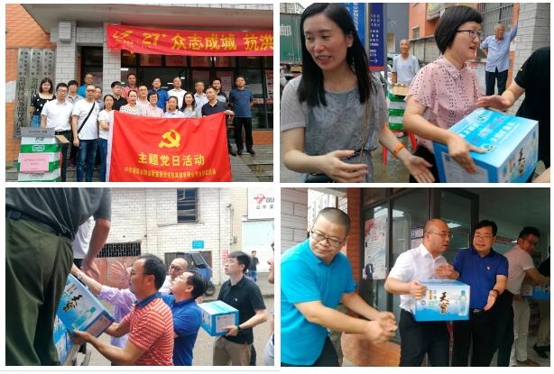 12日,天元区雷打石镇沧沙社区、公道社区因受汛情影响,居民日常用水系统全面瘫痪,导致受灾群众急缺生活用水。在接到求助信息后,国信财富集团党支部与天元区金融工作办公室联合开展主题党日活动,迅速组织全体党员同志为雷达石镇受灾群众赠送矿泉水、搬运救灾物资,为受灾群众送去“抗击灾情,我们同在”的勇气和信心。