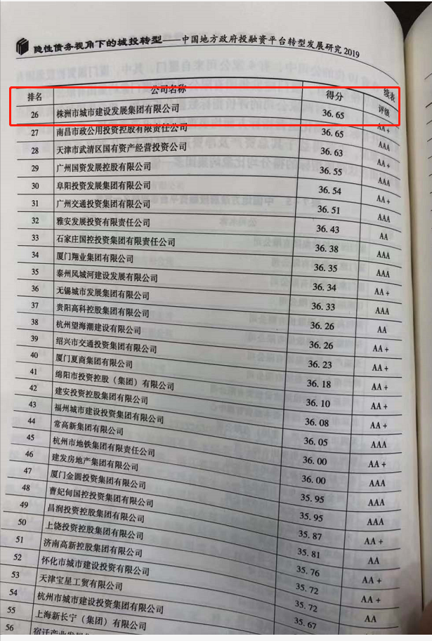 10月25日上午,《隐形债务视角下的城投转型——中国地方政府投融资平台转型发展研究2019》一书发布。在公布的数据中伟德国际betvlctor1946位列全国地级市融资平台综合排名第26位,较2018年排名上升2位。