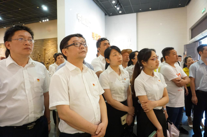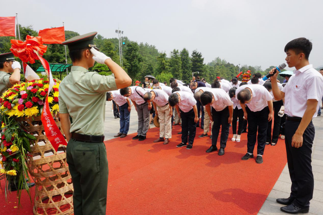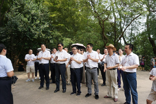 在韶山,大家冒着酷暑,瞻仰了毛主席铜像,怀着无限爱戴与崇敬,庄严肃穆地向毛主席铜像敬献了花篮,深深三鞠躬并高举党旗合影留念,表达了缅怀与敬仰之情,并重温了入党誓词。