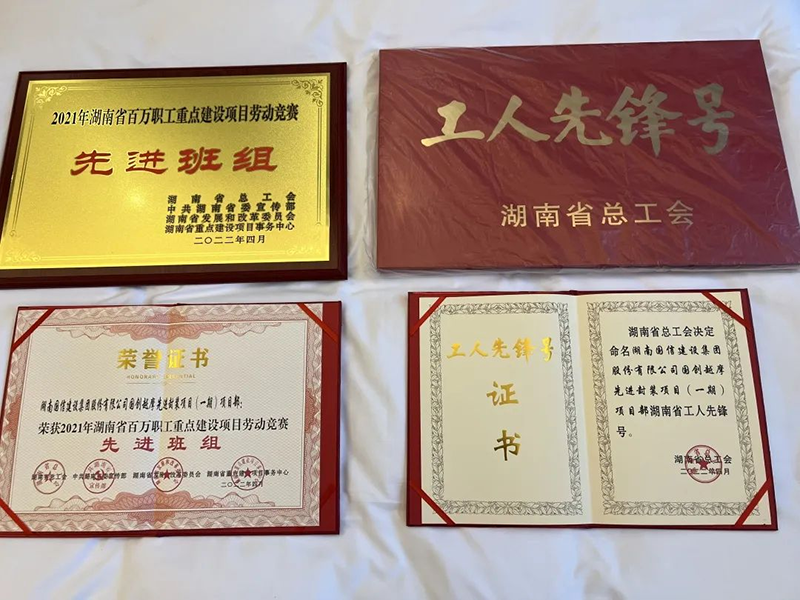 2021年9月9日,开工后仅用6个月时间便完成了面积70000多平方米的主厂房建设并成功封顶,建设成果获多方认可,先后荣获“株洲经济开发区2021年度抗击新冠肺炎疫情工作先进单位”、“湖南省工人先锋号”、“2021年湖南省百万职工重点建设项目劳动竞赛先进班组”等荣誉称号。