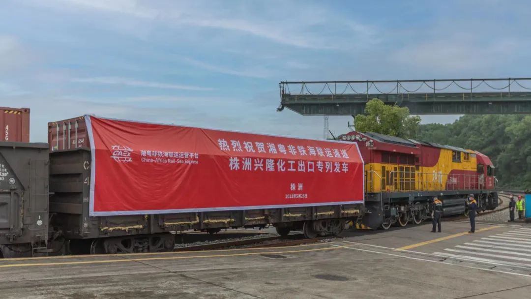 湘粤国际物流通道是湖南省融入“一带一路”国际物流通道体系之一,湘粤非铁海联运为该通道的“标志性工程”。湘粤非铁海联运通道以株洲为主集结中心,吸纳湖南及中西部省份出口外贸货物,通过铁运、陆运、水运的方式集结至株洲北站,经铁路班列南下至广州南沙港、盐田港、蛇口港,而后上大船至全球各地。湘粤非铁海联运通道项目在保障中非深度经贸往来的基础上,强化国际物流创新,以成本和船期 优势吸引全国内陆省份对非进出口货源在湖南集结,把湘粤非铁海联运班列打造成实际意义上的泛中非快线,形成辐射全国的对非洲、 亚太、中东、拉美、中东欧、北美贸易新通道。