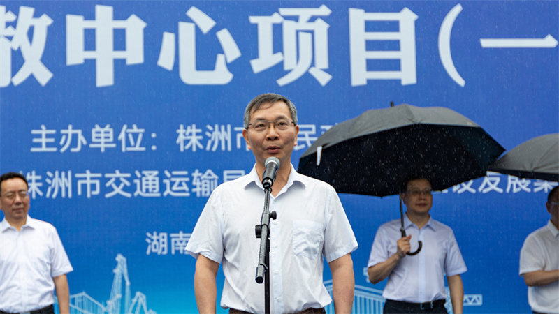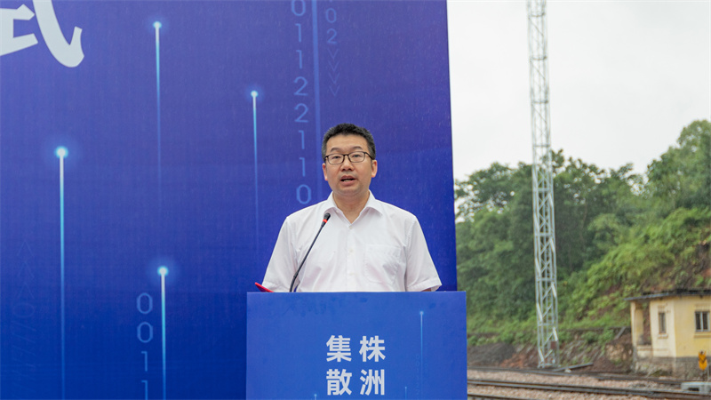 活动现场,夏春良介绍项目的基本情况,广铁集团株洲北站站长李怀兵就项目启运仪式现场致辞。株洲综合物流集散中心项目位于石峰区清水塘新能源装备产业新城,总占地规模2096亩,由湘粤非总部、铁路物流园、株洲港、B保中心及铁路专用站五部分组成。项目以湘粤非铁海联运为核心,通过打造多功能物流板块,助力物流枢纽升级。