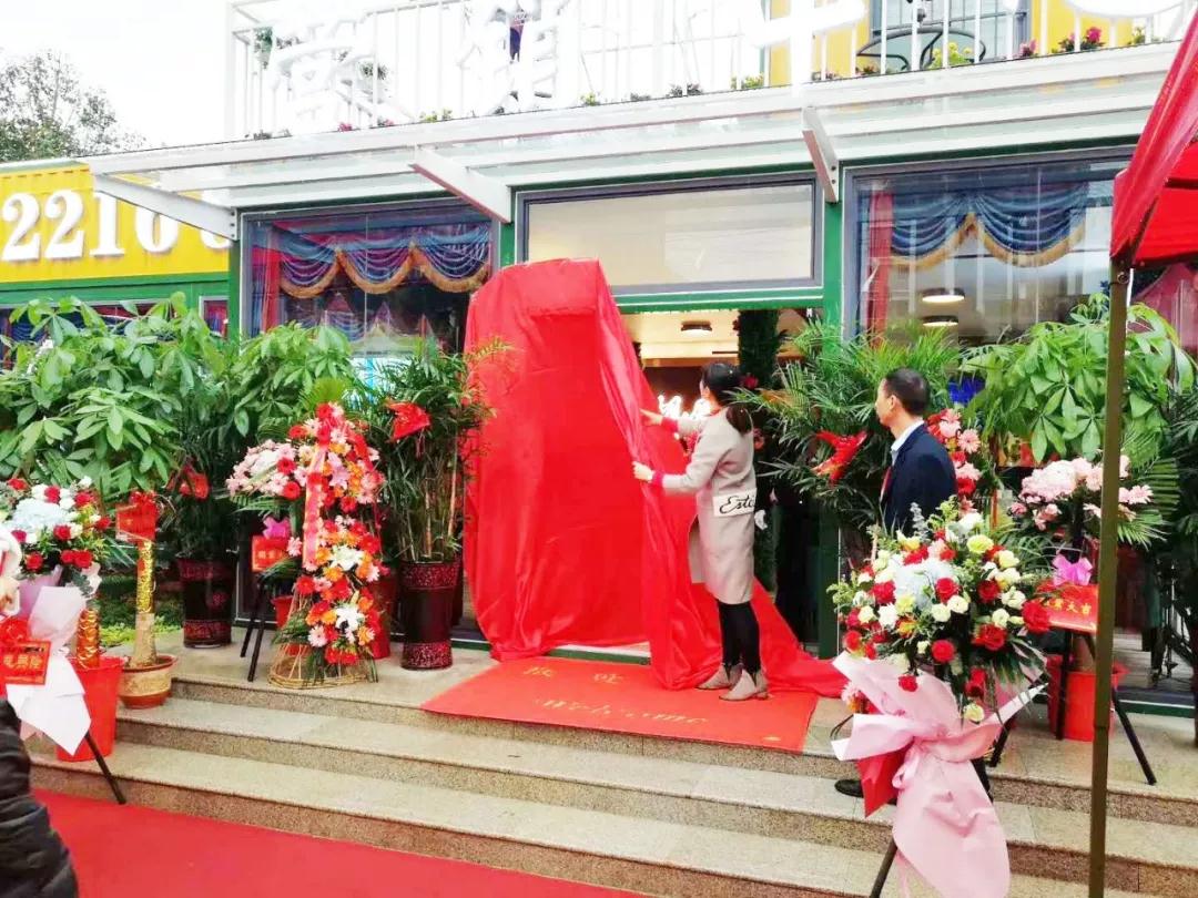 营销中心入口处,鲜艳的红地毯和精致的花篮装点出浓浓的喜庆氛围,气势恢宏,仪式感十足。虽然离营销中心开放仪式还尚早,但营销中心前早已人头攒动,到访来宾络绎不绝,签到区一片热闹盛景。