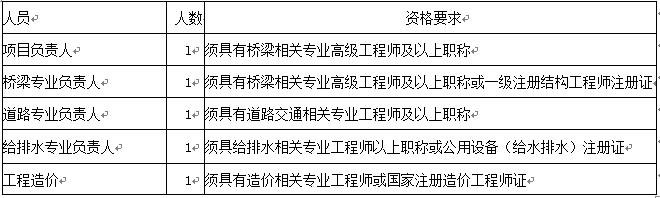 3、拟任项目咨询服务负责人为本单位正式职工,具有桥梁相关专业高级工程师及以上职称,咨询服务负责人未经比选人书面同意不得更换。