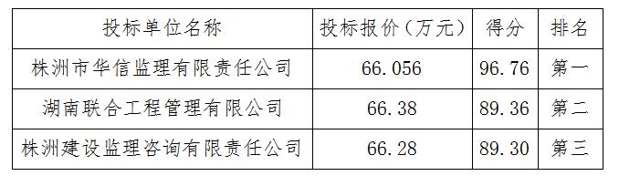湖南新泉工程造价咨询有限公司受株洲湘渌建设发展有限公司的委托,对株洲南洲生态新城南阳路(原规划02号道路)一期(渌帆路至渌财路)新建工程施工监理进行了公开招标,于2019年7月18日15时00分在湖南新泉工程造价咨询有限公司进行了开标、评标。评标委员会按照招标文件确定的评标原则和办法,对有效的投标书进行了认真的评审。经评标委员会集体评议,向业主推荐中标候选人分别如下: