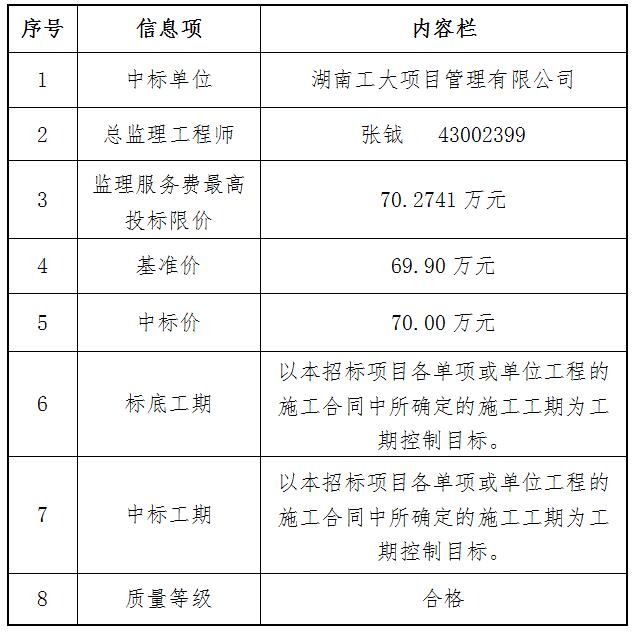 株洲南洲生态新城南阳路(原规划02号道路)一期(渌帆路至渌财路)新建工程施工监理中标结果公告