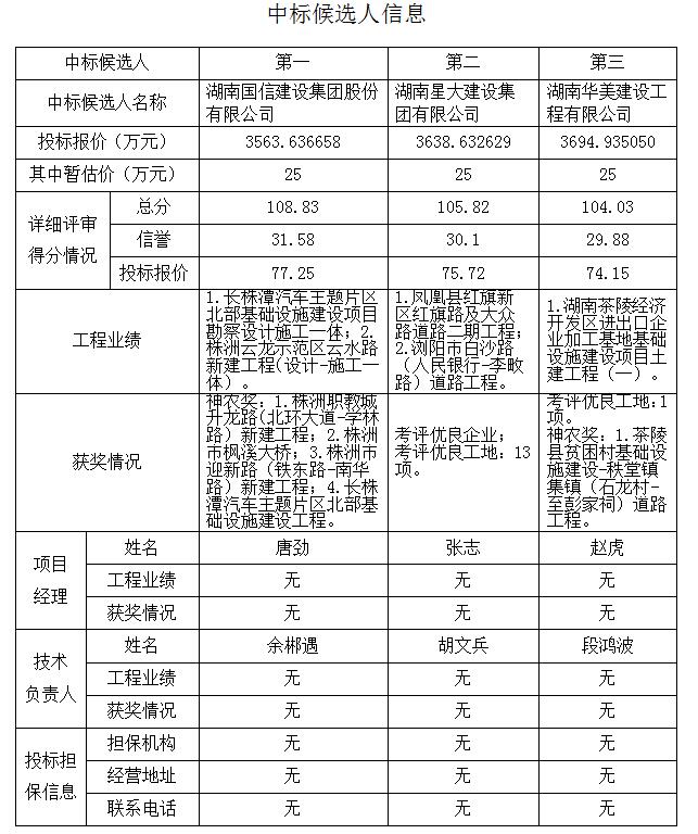 根据招标投标相关法律法规及招标文件的规定,株洲南洲生态新城南阳路(原规划02号道路)一期(渌帆路至渌财路)新建工程施工评标工作已于2019年 9月24日在株洲市公共资源交易中心七楼评标室结束,本项目采用的评标办法为湘建监督[2018]238号文综合评估法Ⅰ,评标委员会推荐了以下3名中标候选人(排序),现将相关信息予以公示。公示期2019年9月25日至2019年9月27日。