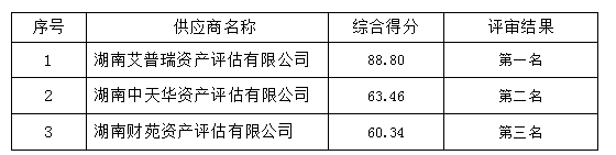 成交供应商名称:湖南艾普瑞资产评估有限公司
