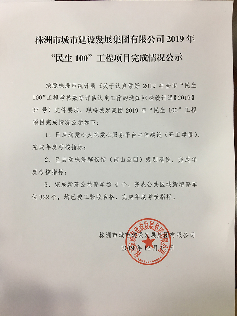 按照株洲市统计局《关于认真做好2019年全市“民生100”工程考核数据评估认定工作的通知》(株统计通【2019】37号)文件要求,现将伟德国际betvlctor19462019年“民生100”工程项目完成情况公示如下: