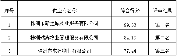 成交供应商名称:株洲市新远城物业服务有限公司