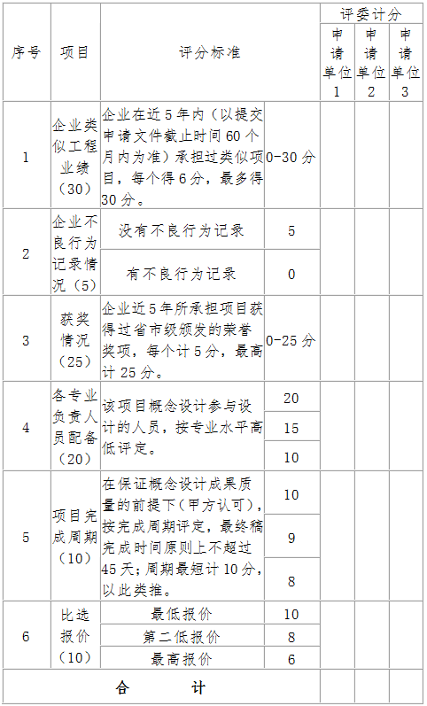 (三)采用综合评估法,比选申请单位需通过符合性检查后,才能进入详细评审,否则视为不合格申请单位。 通过符合性检查后的合格申请单位,经过资格评审后得分最高的投标单位中标,具体要求如下: