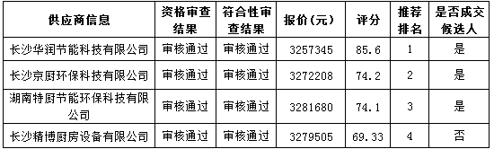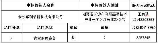 湖南中新工程项目管理有限公司受株洲市武广新城开发建设有限公司的委托,对株洲市二中附小食堂厨房设备采购项目公开招标,经评标委员会评审,采购人确认,现将采购结果公告如下。