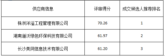 受株洲市武广新城开发建设有限公司的委托,湖南万达项目管理有限公司对株洲市二中附小新建工程安防设备采购项目进行询比采购,经评审小组评审,推荐了以下3名中标候选人(排序),现将相关信息予以公示。公示期2020年6月24日至2020年6月29日。