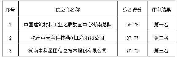 成交供应商名称:中国建筑材料工业地质勘查中心湖南总队