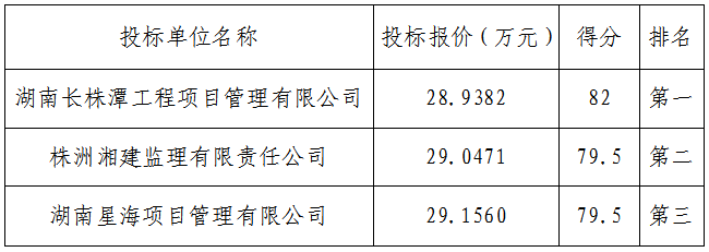华新项目管理集团有限公司受株洲市伟德国际betvlctor1946建设投资有限公司的委托,对天元区南塘路(荷花路~昆仑山南路)新建工程监理进行了公开比选,于2020年8月26日15时30分在华新项目管理集团有限公司进行了开标、评标。评标委员会按照比选文件确定的评标原则和办法,对有效的投标书进行了认真的评审。经评标委员会集体评议,向业主推荐中标候选人分别如下: