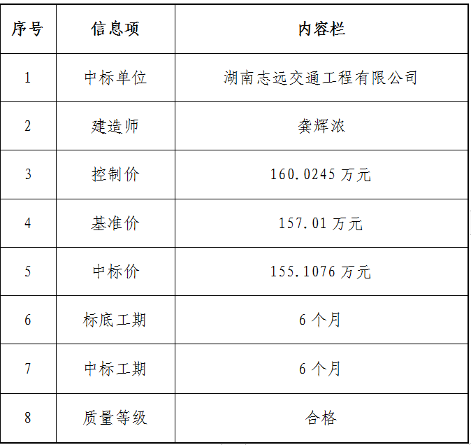 中选结果公告