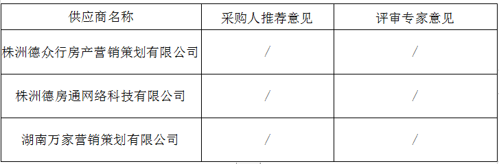 1、成交供应商名称:株洲德众行房产营销策划有限公司