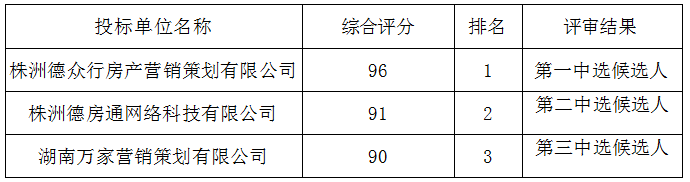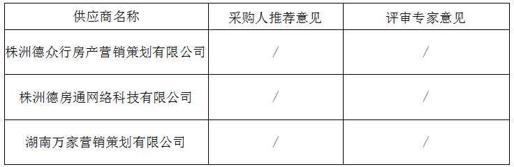 1、成交供应商名称:株洲德众行房产营销策划有限公司