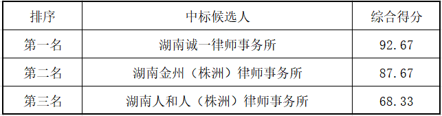 株洲清水塘地产开发有限公司2021年度常年法律顾问项目比选采购于2021年02月01日结束,现将成交结果公告如下: