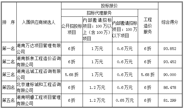 公示内容:根据询比采购文件的规定,2021年度招标代理机构及工程咨询服务入围单位询比采购项目评审工作已于2021年2月3日在株洲市城市公用事业经营有限公司会议室结束。评审委员会按照询比采购文件确定的评审办法,对所有有效报价进行了详细的评阅,评委们经过集体充分评议,推荐的入围供应商候选人为: