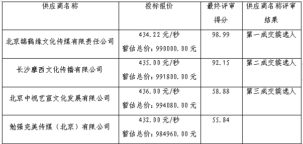 成交供应商名称:北京锦鹤缘文化传媒有限责任公司