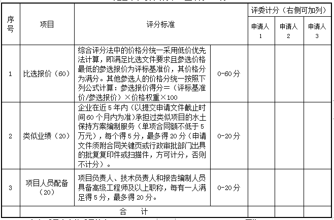 比选评审综合评分表(基本分100分)