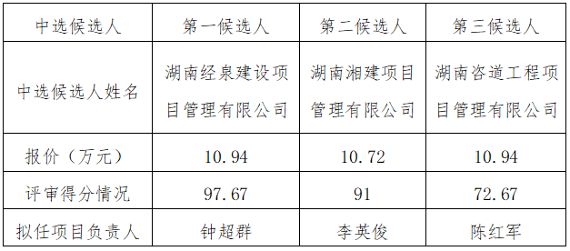 根据公司相关管理办法规定,株洲市伟德国际betvlctor1946建设投资有限公司株洲市枫溪生态城枫溪港路(枫溪大道-溪七路)、枫溪生态城溪六路(枫溪港路-枫溪港老港)、天枫路(湿地东路-溪五路)、湿地东路(天枫路-天池路)新建工程结算审核服务比选工作已于2021年5月20日在株洲市伟德国际betvlctor1946建设投资有限公司2楼会议室结束,本项目采用的评估办法为综合评分法,评审委员会推荐了以下3名中选候选人(排序),现将相关信息予以公示。
