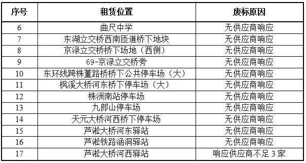 本公告公示时间3个工作日,公示期间参与采购活动的供应商认为采购过程和成交结果使自己权益受到损害的,可以以书面形式向采购人提出质疑,采购人按相关的规定接收质疑。若无异议,公示期满后,采购人将确定序号为1-5个租赁项的第一名成交供应商候选人为成交供应商,采购人将确定序号为6-17个租赁项予以废标处理。