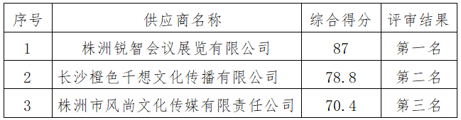 株洲市伟德国际betvlctor1946农产品有限公司 的 株洲市农产品智慧冷链物流园全面招商暨冷库试运营启动仪式策划服务采购项目比选采购于2021年06月24日评审结束,经采购人确认现将成交结果公告如下: