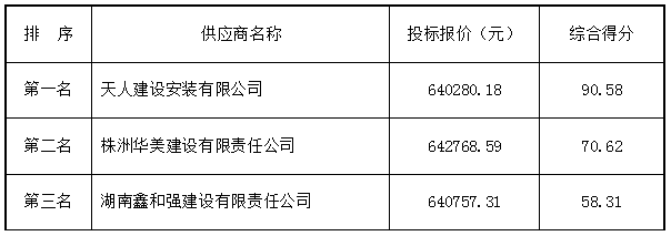 排 序 供应商名称 投标报价(元) 综合得分
