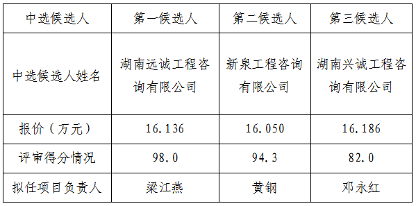 根据公司相关管理办法规定,株洲市伟德国际betvlctor1946建设投资有限公司响石广场改迁电力管线迁改工程结算审核服务比选工作已于2021年9月18日在株洲市伟德国际betvlctor1946建设投资有限公司2楼会议室结束,本项目采用的评估办法为综合评分法,评审委员会推荐了以下3名中选候选人(排序),现将相关信息予以公示。