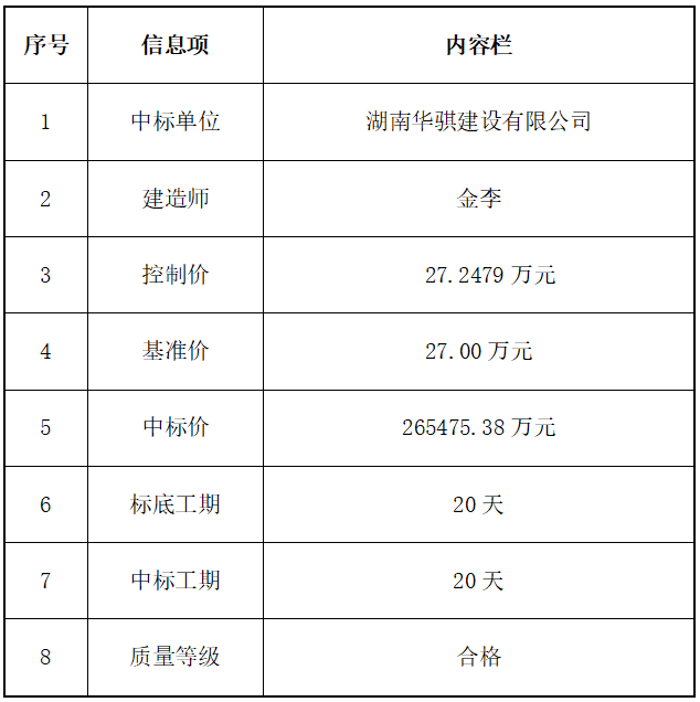 株洲市救灾物资储备库新增项目施工中选结果公告