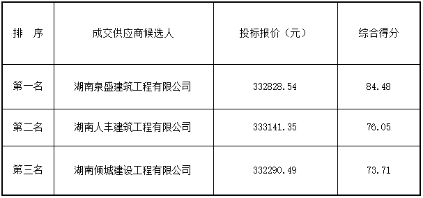 公示内容:根据询比采购文件的规定,北环大道立交桥下、田心立交桥下、东环北路(美化基站旁)、坚固立交桥下5G通信配套机房施工评审工作已于2021年11月10日在株洲市天元区泰山西路高科汽配园D区11栋3楼小会议室结束。评审委员会按照询比采购文件确定的评审办法,对所有供应商进行了详细的评阅,评审小组经过集体充分评议,推荐的成交候选人为: