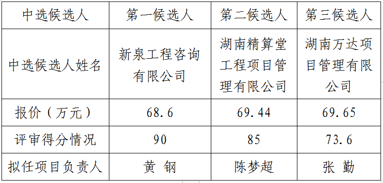 根据公司相关管理办法规定,株洲市伟德国际betvlctor1946建设投资有限公司株洲市北环大道(云龙大道-迎宾大道)新建工程ppp项目结算审核服务比选工作已于2021年11月18日在株洲市伟德国际betvlctor1946建设投资有限公司2楼会议室结束,本项目采用的评估办法为综合评分法,评审委员会推荐了以下3名中选候选人(排序),现将相关信息予以公示。