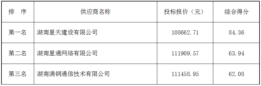 公示内容:根据询比采购文件的规定,株洲市清霞路三期通信线路迁改工程与铜霞路(湘芸北路-叶子冲变电站)电力管廊新建通信线路迁改工程-劳务分包评审工作已于2021年12月3日在新泉工程咨询有限公司评标室结束。评审委员会按照询比采购文件确定的评审办法,对所有供应商进行了详细的评阅,评审小组经过集体充分评议,推荐的成交候选人为: