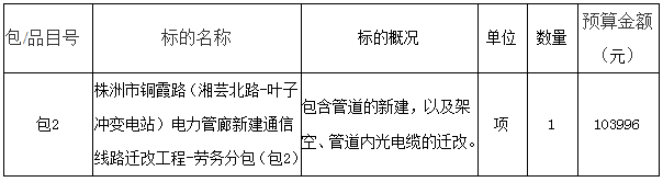 1.1 项目名称:株洲市清霞路三期通信线路迁改工程与铜霞路(湘芸北路-叶子冲变电站)电力管廊新建通信线路迁改工程-劳务分包重新询比(包2)