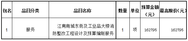 项目名称:江南商城东街及工业品大楼消防整改工程设计及预算编制