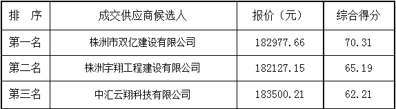 公示内容:根据比选文件的规定,株洲市响田大桥拓宽改造通信管线迁改工程-劳务分包评审工作已于2022年4月2日在株洲市城市公用事业经营有限公司会议室结束。评审小组按照比选文件确定的评审办法,对所有有效报价进行了详细的评阅,评委们经过集体充分评议,推荐的成交供应商候选人为: