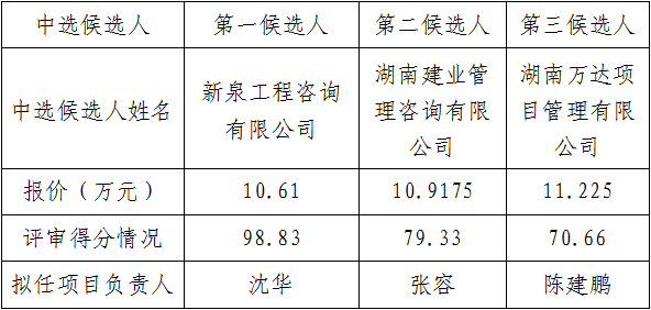 根据公司相关管理办法规定,株洲市伟德国际betvlctor1946建设投资有限公司株洲市响田大桥拓宽改造接线工程招标代理服务比选工作已于2022年4月1日在株洲市伟德国际betvlctor1946建设投资有限公司28楼2821会议室结束,本项目采用的经评审的低价优先法,评审委员会推荐了以下3名中选候选人(排序),现将相关信息予以公示。