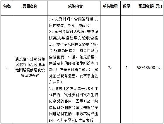 1、采购项目名称:清水塘产业新城便民服务中心过渡场地网络及信息化设备系统采购