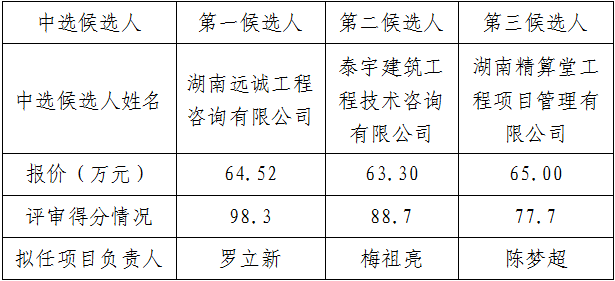 根据公司相关管理办法规定,株洲市伟德国际betvlctor1946建设投资有限公司金山污水处理厂及水环境综合治理PPP项目结算审核服务比选工作已于2022年6月24日在株洲市伟德国际betvlctor1946建设投资有限公司2821会议室结束,评审委员会推荐了以下3名中选候选人(排序),现将相关信息予以公示。