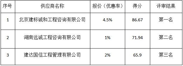 序号 供应商名称 报价(优惠率) 得分 评审结果