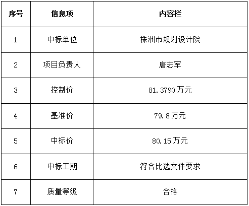 株洲市城市建设发展集团项目信息管理系统项目比选中标候选人公示