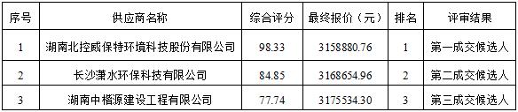 成交供应商名称:湖南北控威保特环境科技股份有限公司